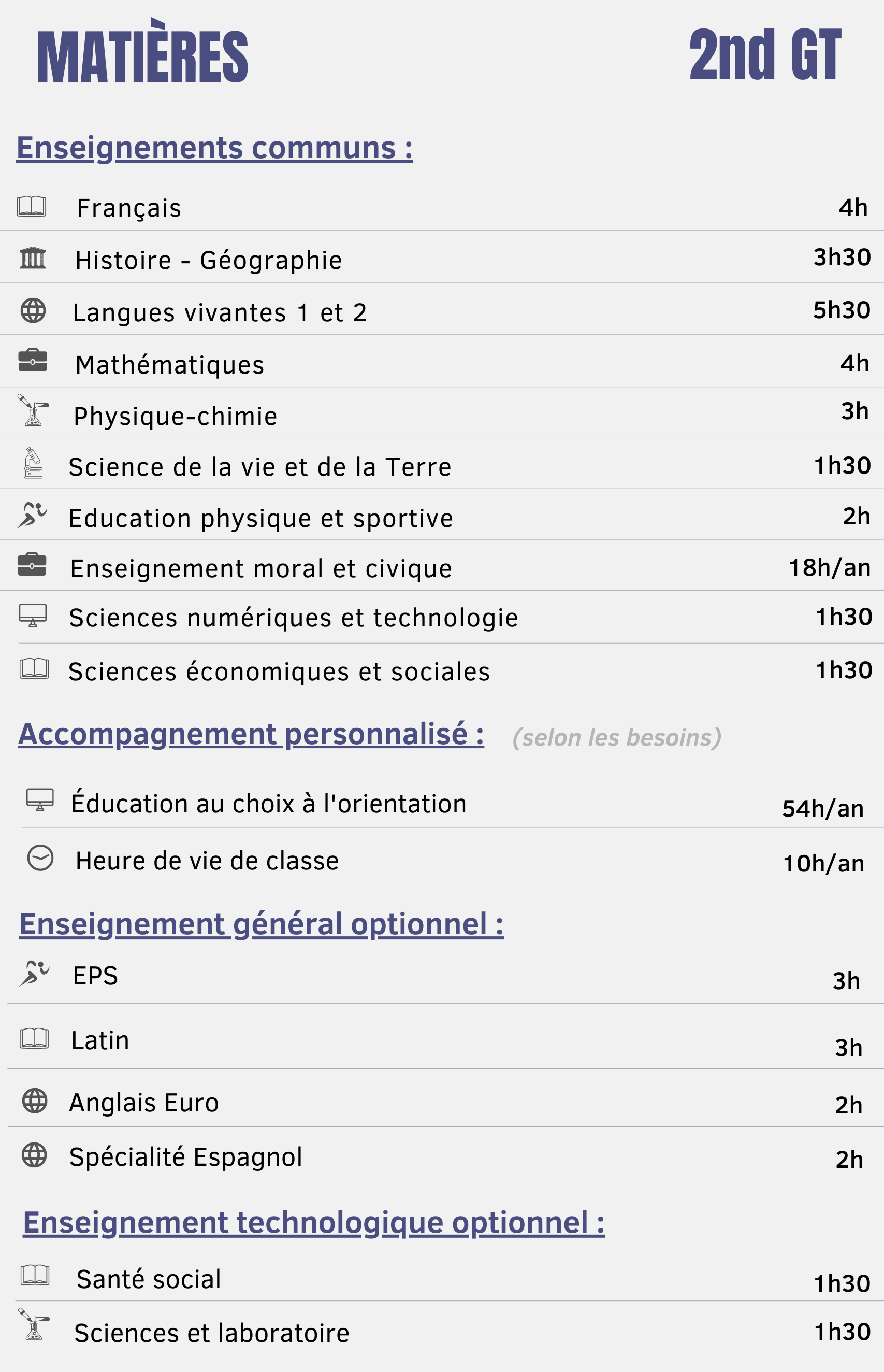 Des enseignements facultatifs permettront, en outre, à l’élève de compléter son parcours.