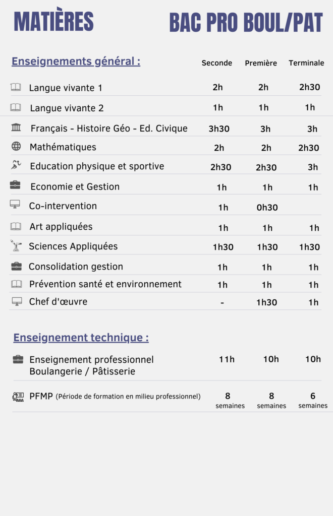 EMPLOI DU TEMPS TYPE D'UN BAC PRO BOULANGERIE/PÂTISSERIE